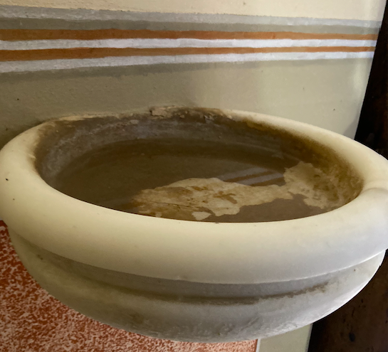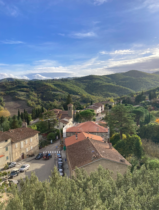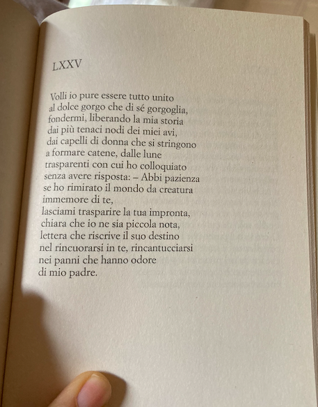 La ritrovo al risveglio, dopo una notte trascorsa a leggere le poesie da questa raccolta, dopo una giornata a camminare nel tempo, tra colline e chiese, fin nel Castello di Bourbon di Lippiano, Palazzo Mignini, ogni passo su passi già segnati, dalla cucina alle scale, dalle stanze ai saloni, al percorso sul tetto fin sotto la torre, e poi giù in discesa fino alle antiche cantine. Abbiamo vissuto presenze, siamo stati a riempire assenze. Grazie alla generosa ospitalità di due sorelle, Lilly e Federica, eredi di un maniero, lasciato dal proprietario per la terra del sogno, l’America. Così un ramo dei Bourbon si è allungato oltreoceano. E le radici? Sono rimaste a nutrire chi le innaffiava e innestava di nuova vita.