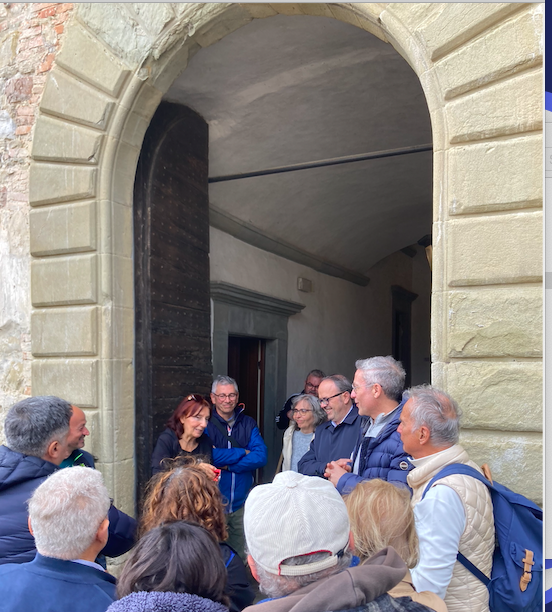 Ecco il bisnonno delle due sorelle, valore contadino, eroe della zolla, eccolo custodire le mura, farne granaio, azienda agricola da tramandare. È così che le sorelle trovano una torre infinita in potenza, riportano in vita camere, camminamenti, non si sottraggono al vuoto, aggiungono punti alla trama del castello. E nell’oggi accolgono la nostra camminata, organizzata dall’Associazione San Zeno APS, ospitano un pranzo generoso, la vita che rinnova passi e cade e si rialza.